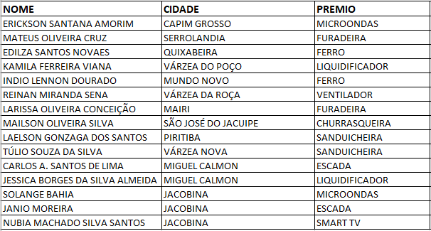 GANHADORES DO SORTEIO DE PRÊMIOS DO SINDICATO DIA 27/11/2018.